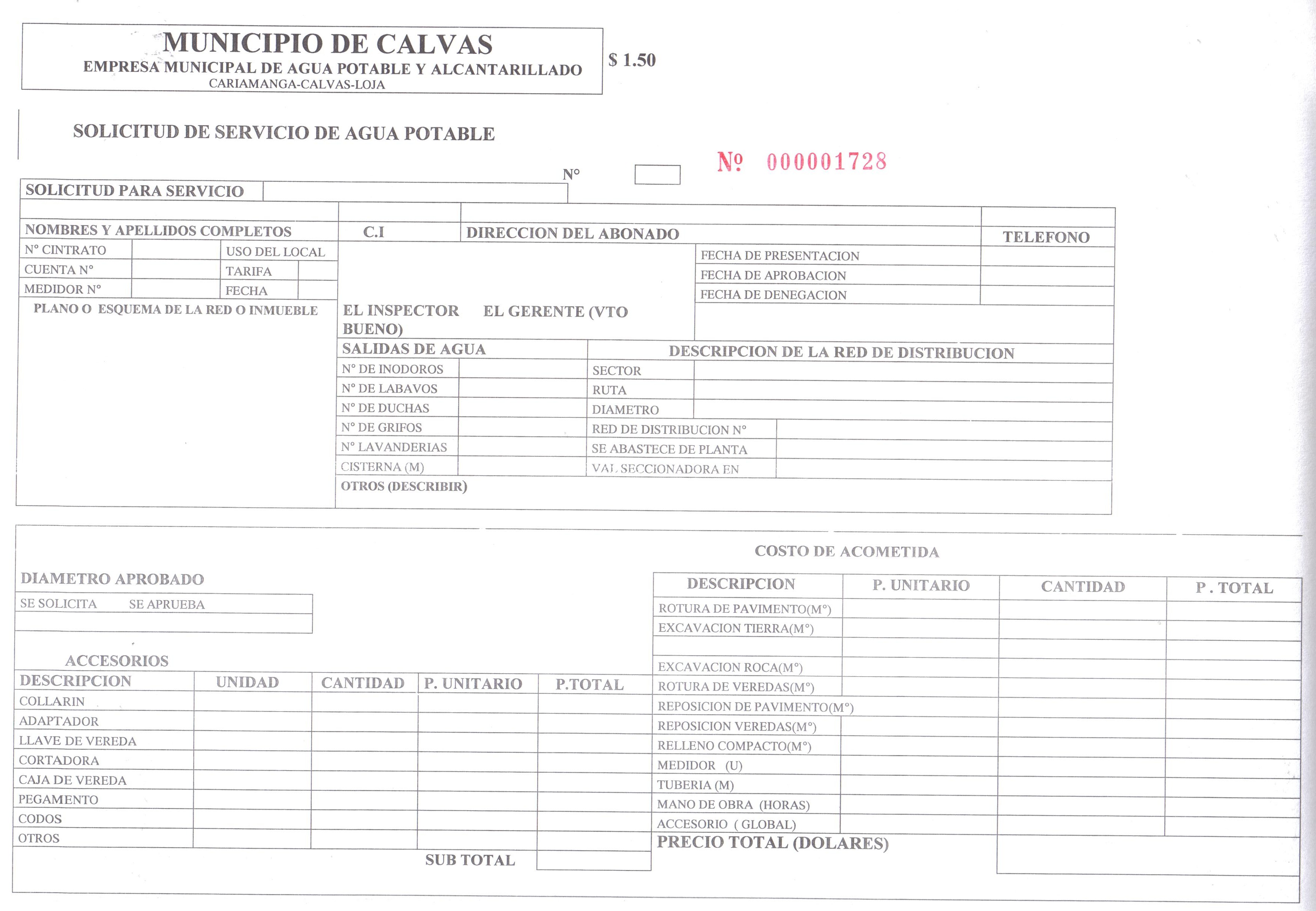 NOTA: Estos formularios de ejemplo son para que la ciudadanía conozca el procedimiento para solicitar los servicios allí descritos, está prohibida su impresión y no son válidos para presentar en la EP-EMAPAC. Ud. debe acercarse a nuestras oficinas para comprar estas especies valoradas y numeradas.