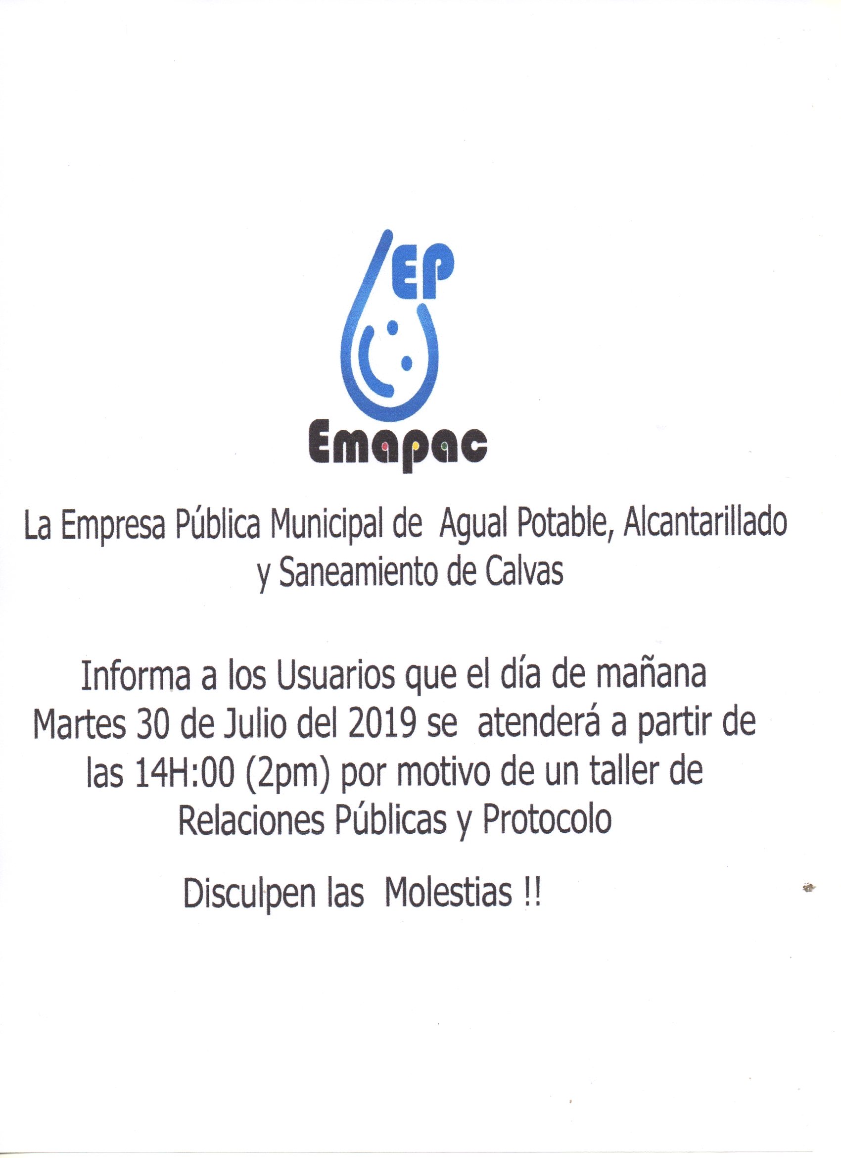 La Empresa Pública Municipal de Agua Potable, Alcantarillado y Saneamiento de Calvas EP-EMAPAC